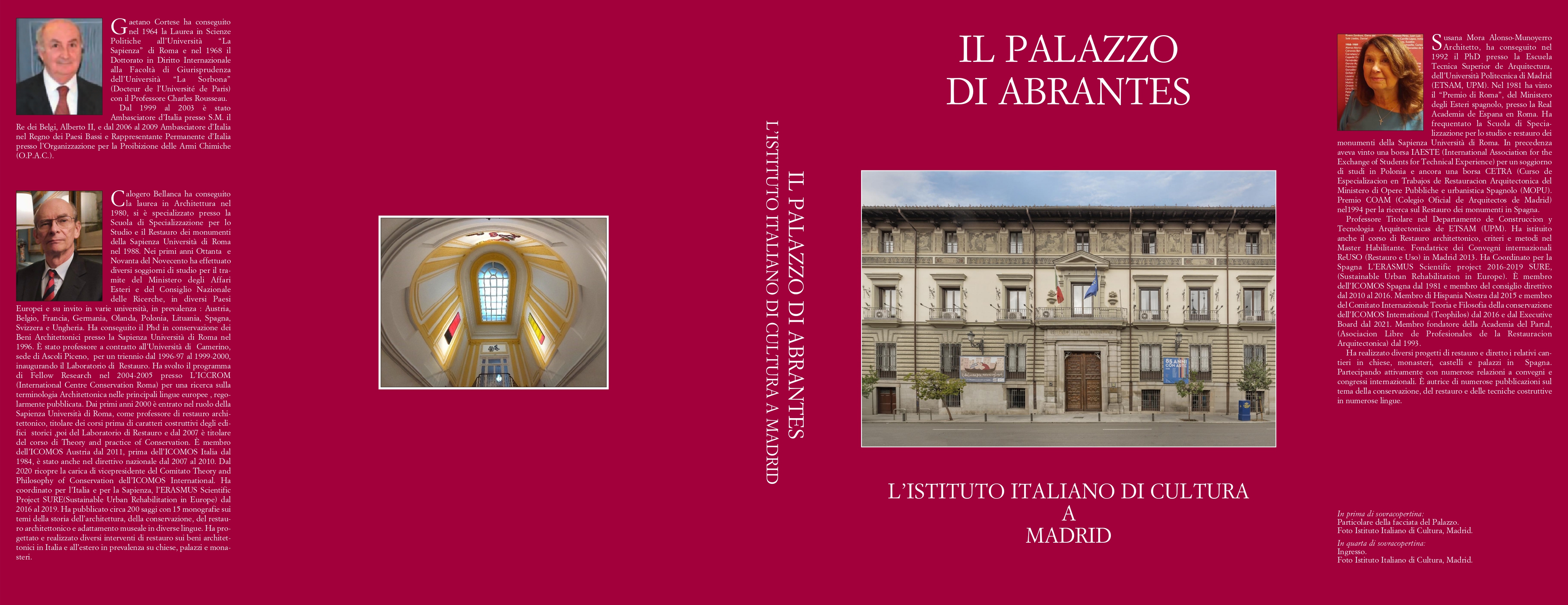 Curata dal Prof. Calogero Bellanca e dalla Prof.ssa Susana Mora Alonso-Munoyerro, l’opera ricostruisce le vicende del Palazzo di Abrantes, sede della Rappresentanza Diplomatica d’Italia a Madrid dal 1888 al 1939 e, da allora, dell’Istituto Italiano di Cultura nella capitale spagnola.