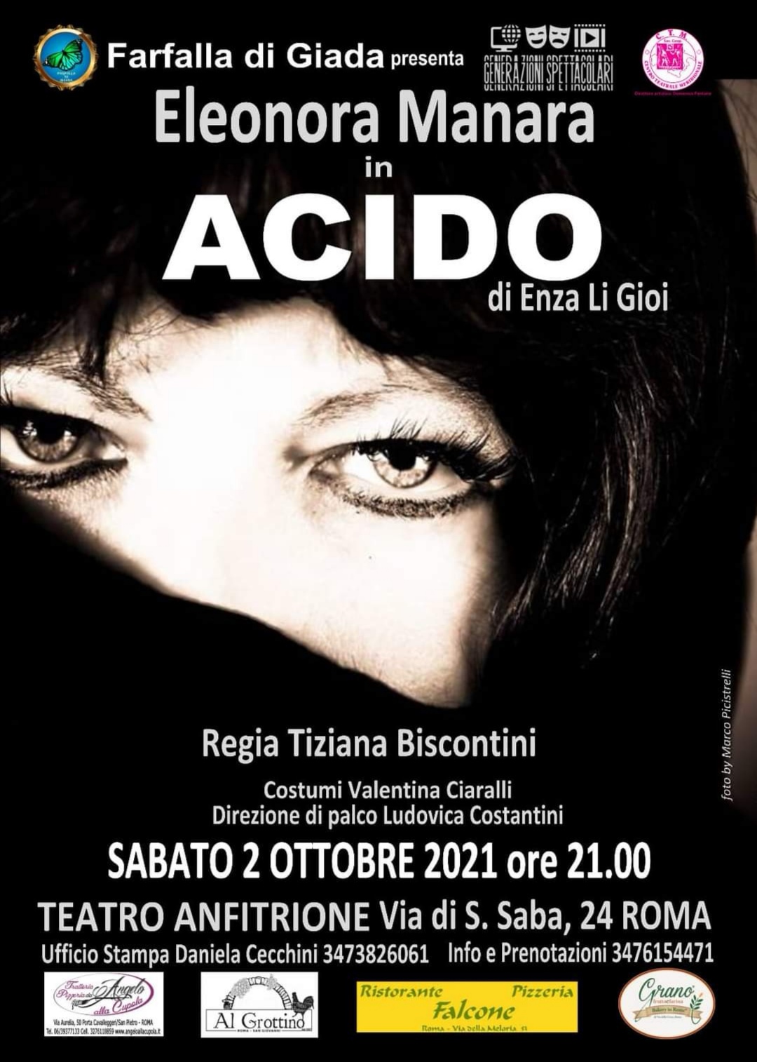 Questa nuova rappresentazione dell’opera teatrale “ACIDO” di Enza Li Gioi è stata impreziosita in primis dalla nuova regia di Tiziana Biscontini, una professionista di consolidata esperienza, oltre che da novità nei requisiti e nelle varie componenti sceniche.