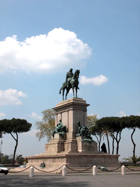 Un’altra tappa importante e significativa del percorso ha avuto luogo presso il Monumento Equestre a Garibaldi. Dopo aver deposto una corona d’alloro, è stata ricordata la figura del valoroso condottiero, come Colui che combatté per la libertà e l’indipendenza dei popoli. E’ stato sottolineato il momento finale della Repubblica Romana quando Garibaldi resosi conto della impossibilità di difendere Roma dall’interno, diede un appuntamento a tutti i combattenti che intendevano seguirlo e a questi disse parole memorabili “La fortuna che oggi ci tradì ci arriderà domani. Io esco da Roma: chi vuole continuare la guerra contro lo straniero, venga con me. Non offro né paga, né quartiere, né provvigioni, offro fame, sete, marce forzate e morte. Chi ha il nome d’Italia non sulle labbra soltanto, ma nel cuore, mi segua”.